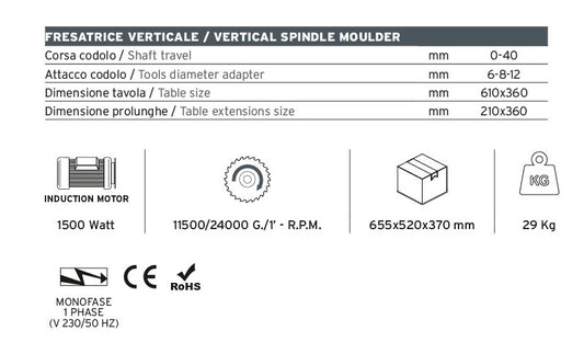 Fresatrice verticale - TV 40 + Cassette Fresa acc.28 | PROMO