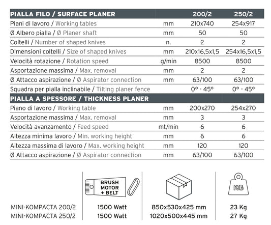 Pialla filo spessore - KOMP.200/2 + Coltelli pialla ACC.33/1-20/2 | PROMO